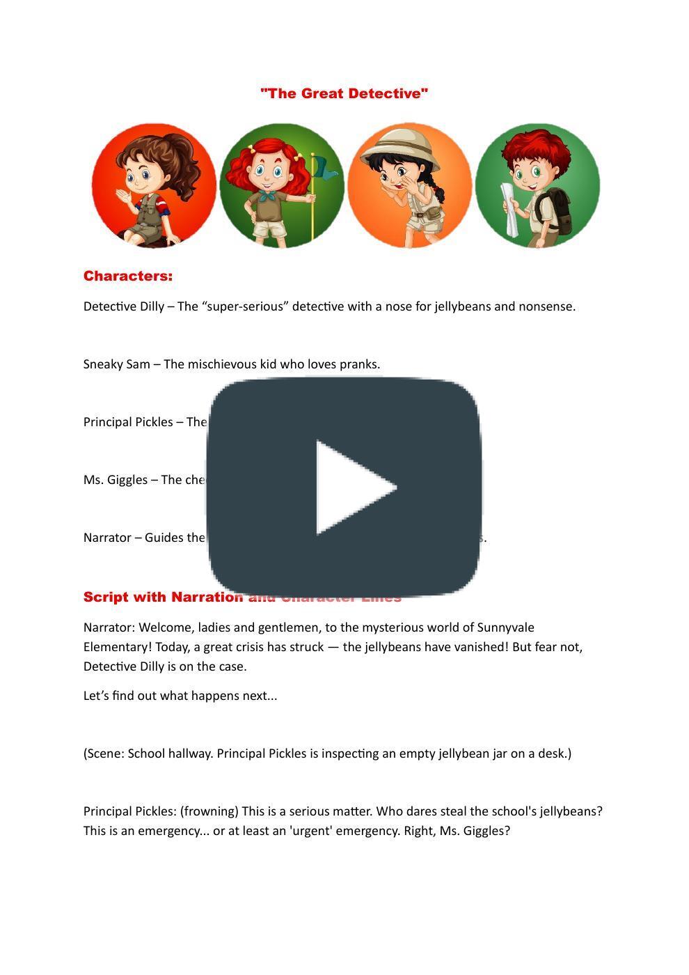 Narrator: Welcome, ladies and gentlemen, to the mysterious world of Sunnyvale Elementary! Today, a great crisis has struck — the jellybeans have vanished! But fear not, Detective Dilly is on the case.